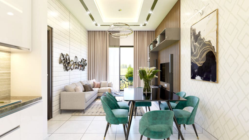 One-bedroom apartments are designed according to the latest lifestyle standards. One-bedroom apartments serve multiple purposes, including a stylish kitchen, a stylish living room, and a comfortable bedroom.